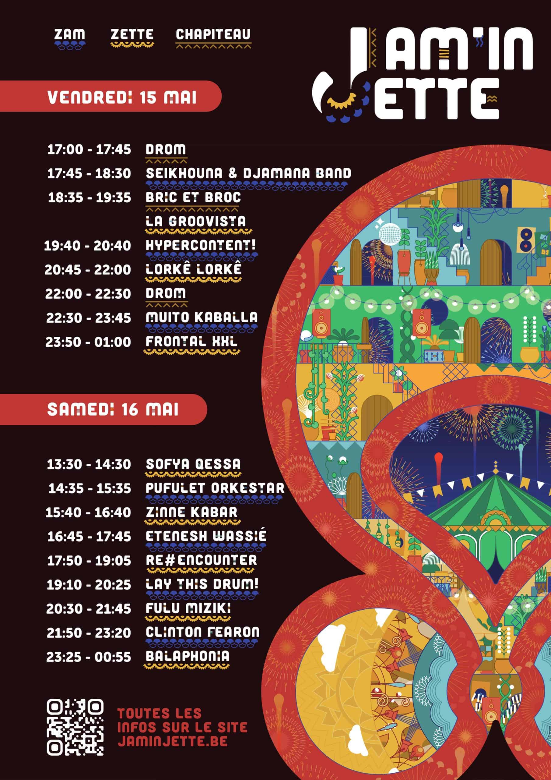 Dat het moeilijke tijden zijn voor de cultuur is alom geweten… en dat ondervindt ook Jam’in Jette. Toch biedt het festival, ondanks de steeds complexere organisatie, ook dit jaar weer een eclectisch programma: meer dan 20 concerten, straattheatervoorstellingen, activiteiten voor kinderen en volwassenen, een ambachtsdorp, stands van verenigingen en een verscheidenheid aan gerechten uit de hele wereld. Dit alles in een warme en gezellige sfeer.